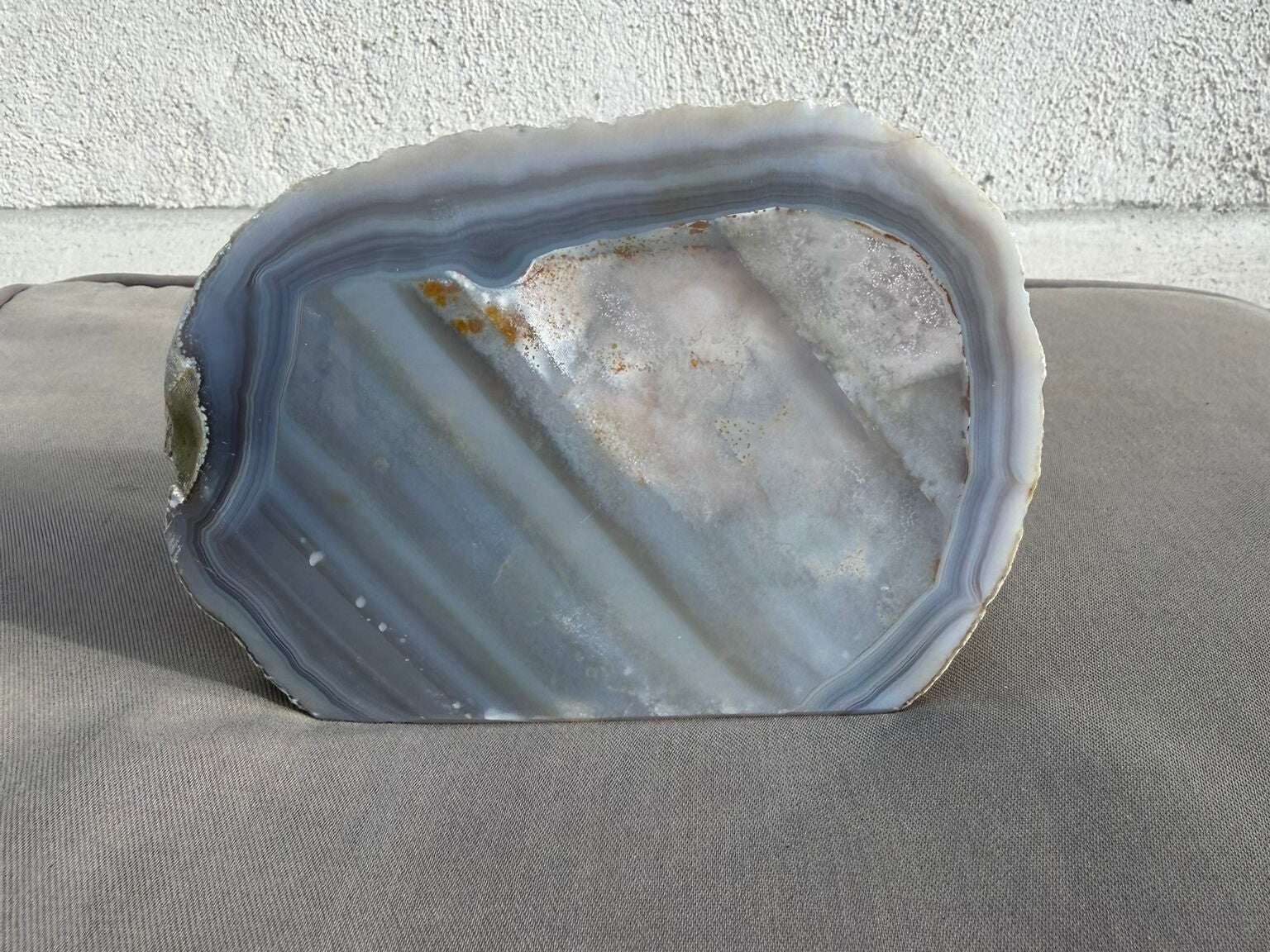 Prachtig agaat standvlak, een echte blikvanger voor elk interieur. Dit unieke stuk is zorgvuldig geslepen en gepolijst, waardoor de natuurlijke patronen en kleuren van de agaat prachtig naar voren komen.