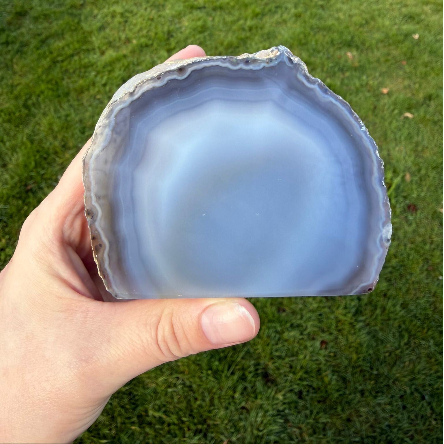 Prachtig agaat standvlak, een echte blikvanger voor elk interieur. Dit unieke stuk is zorgvuldig geslepen en gepolijst, waardoor de natuurlijke patronen en kleuren van de agaat prachtig naar voren komen.