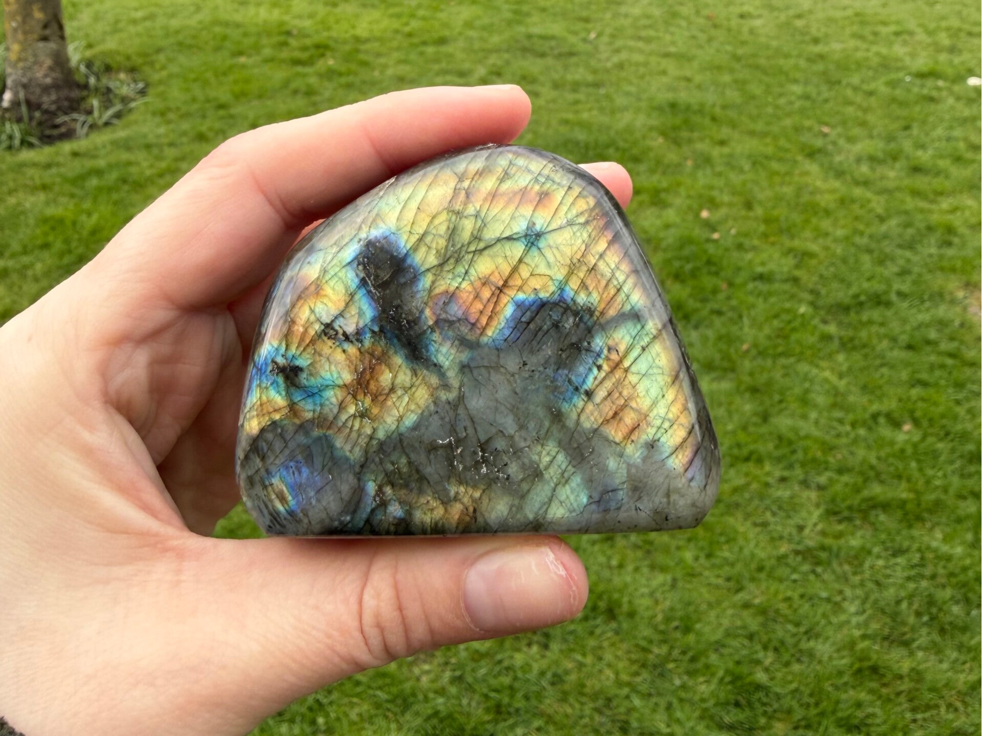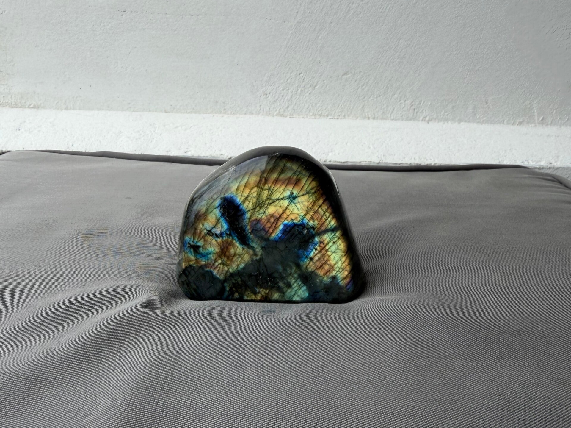 Een prachtig stuk natuurlijke labradoriet met schitterende iriserende kleuren. Bekend om zijn beschermende en versterkende energie, ideaal voor meditatie, edelsteencollecties of als decoratie.